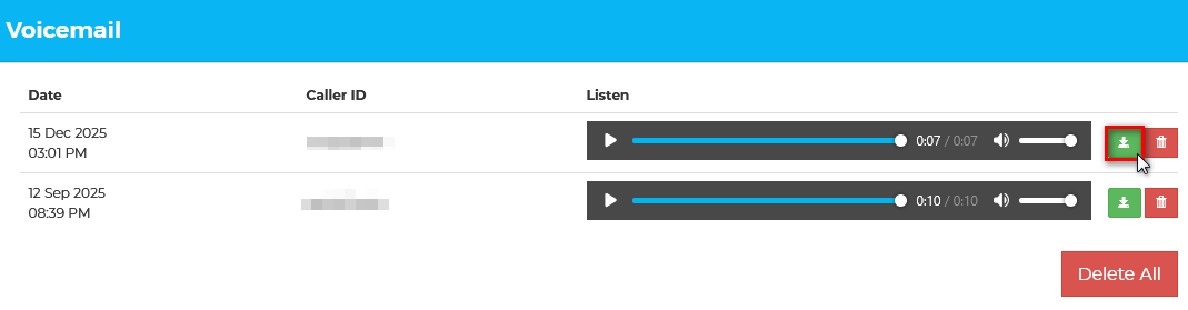 Important: Disabling voicemail will permanently delete all saved messages. Once voicemail is turned off, the mailbox is cleared, and messages cannot be recovered, even if voicemail is re-enabled later. We recommend downloading any important messages before disabling voicemail via My Account.